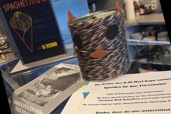 Die Spendendosen findet ihr bislang in folgenden Geschäften in Werl-Aspe: Stärker Sehen, Opitz Fußpflege, Bäckerei Schmidt, Eiscafe Lerose („Kleiner“ Eismann), Apotheke und Rumpelstilzchen.