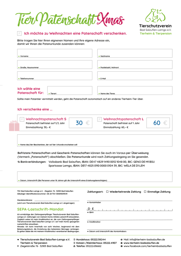Das Xmas-Patenschaft-Formular hierzu finden Sie hier auf der Homepage unter ➡ Infos ➡Formulare