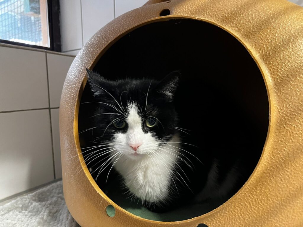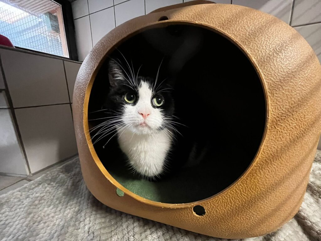 Die schüchterne Katzenlady mit den großen Augen versteht grad die Welt so gar nicht mehr. Nachdem sie als Jungtier vermittel wurde, kam sie nun über den Umweg über das Tierheim Oldenburg wieder zu uns insTierheim. Die Katzenhalter, an die unser Katzenhaus-Team sie damals vermittelt haben, sind nicht mehr erreichbar, haben sie aber anscheinend weitergereicht an die Leute, die sie letztendlich ins Tierheim Oldenburg gebracht haben. Anhand der Tätowierung und der zusätzlichen Kennzeichnung durch einen Mikrochip wurden wir informiert und haben sie natürlich direkt wieder bei uns im Katzenhaus aufgenommen.