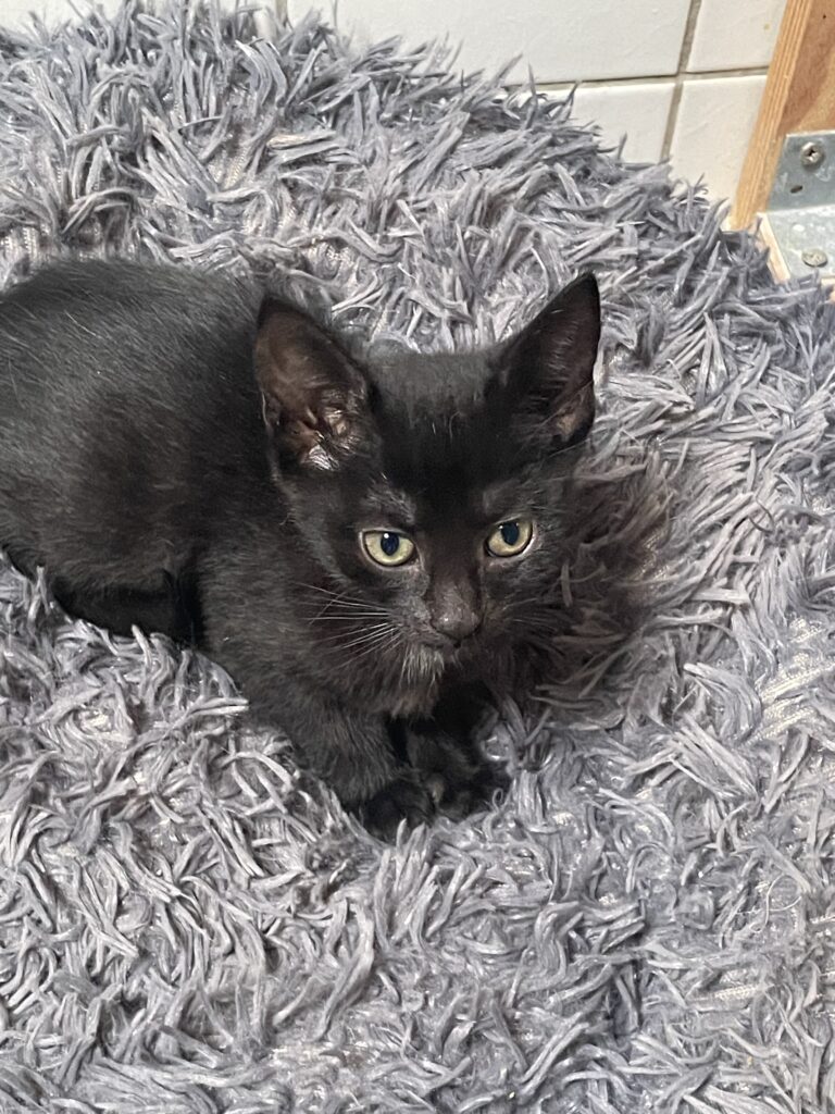 Einen ganzen Wurf schwarzer Katzenbabys hat unsere Pflegestelle aufgezogen, und nur ihre Pflegemama kann die Bande unterscheiden. Die Kitten haben sich nun gut entwickelt, fressen völlig selbstständig und sind bereit in ein neues Zuhause umzuziehen. Fenjas Geschwister, Flora, Fred, Fiete, Franka & Franzi leben mittlerweile zusammen mit anderen Katzenbabys bei uns in einem Gemeinschaftsraum im Tierheim.