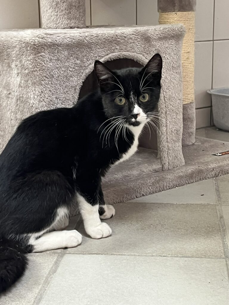 Gino kam als Babykatze mit seinen Geschwistern zu uns ins Tierheim. Er lebt hier mittlerweile in einem Katzenraum in einer bunt gemischten Katzengruppe. Da wir Katzenkinder nicht in Einzelhaltung abgeben, sollte entweder im neuen Zuhause bereits eine Katze vorhanden sein, oder er bringt von hier aus dem Tierheim einen Kumpel mit.