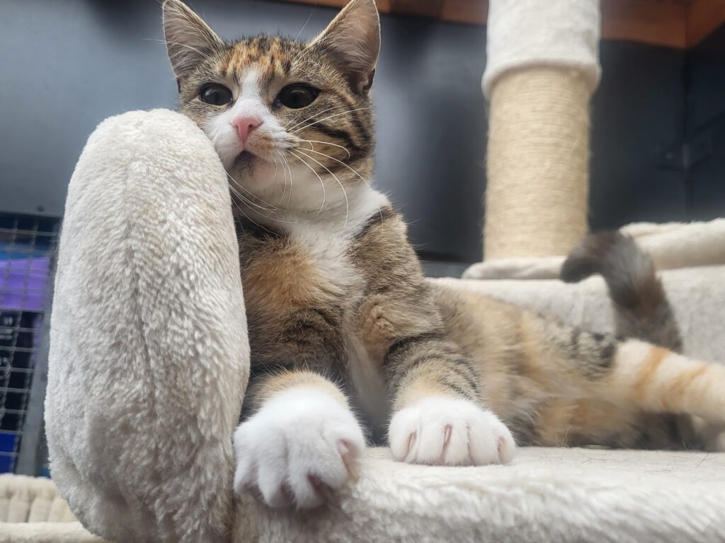 Gloria kam als Babykatze mit ihren Geschwistern zu uns ins Tierheim. Sie lebt hier mittlerweile in einem Katzenraum in einer bunt gemischten Katzengruppe. Da wir Jungkatzen nicht in Einzelhaltung abgeben, sollte entweder im neuen Zuhause bereits eine Katze vorhanden sein, oder sie bringt von hier aus dem Tierheim einen Kumpel mit.