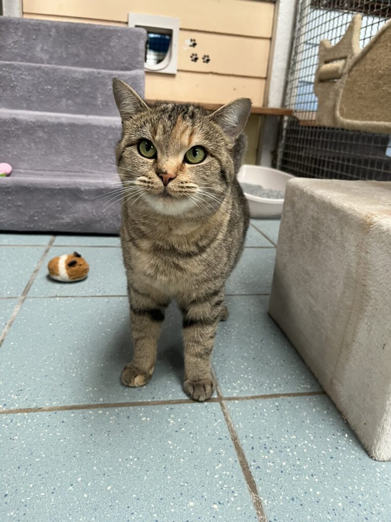 Zwischenzeitlich wurde sie bei uns im Tierheim geimpft und enwurmt und such nun ein neues Zuhause. Sie benötigt Freigang. Ivy ist anfangs recht schüchtern fremden Menschen gegenüber, weiß aber dann auch recht schnell genau was sie will.